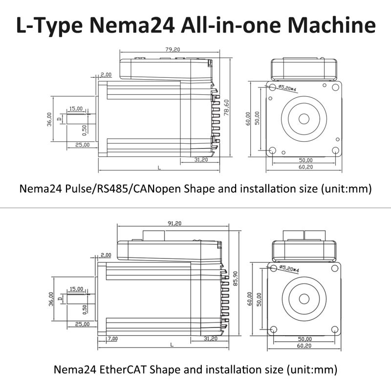L Type Nema24 Integrated Stepper Motor iki nganggo teknologi DSP 32-bit generasi anyar, nggabungake RS485, Canopen, Ethercat, fungsi kontrol bus Pulse, ndhukung protokol komunikasi MODBUS-RTU, bisa dipasang nganti 32 sumbu, bisa mujudake bus multi-sumbu kontrol sinkron, driver wis 15 posisi internal lan 15 kacepetan internal, ndhukung bali otomatis menyang nul, Absolute / posisi relatif, JOG lan fungsi liyane, lan bisa langsung kontrol dening layar tutul utawa controller karo antarmuka RS485. Kontrol pulsa nggabungke fungsi kontrol driver pamisah, ndhukung saiki poto-tuning, pulsa + kontrol arah, kontrol pulsa pindho lan fungsi liyane, nalika Ngapikake stabilitas motor tanpa mundhut langkah lan mundhak suhu kurang, iku uga mbenakake kinerja dhuwur-kacepetan. saka motor, nyuda geter motor, nambah kacepetan Processing lan akurasi mesin, lan nyuda konsumsi daya saka mesin. Mode kontrol didhukung dening Ethercat